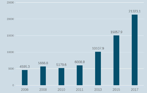 近年來,加拿大的責任投資呈現(xiàn)迅速增長態(tài)勢。據(jù)加拿大責任投資聯(lián)盟[1](Canada Responsible Investment Association,簡稱RIA)統(tǒng)計,加拿大責任投資2015年至2017年間增長了41.6%;2017年,加拿大責任投資總額約為2.13萬億加元,已超過投資市場總額的50%。今年1至4月,加拿大又推出了11只可持續(xù)發(fā)展基金。